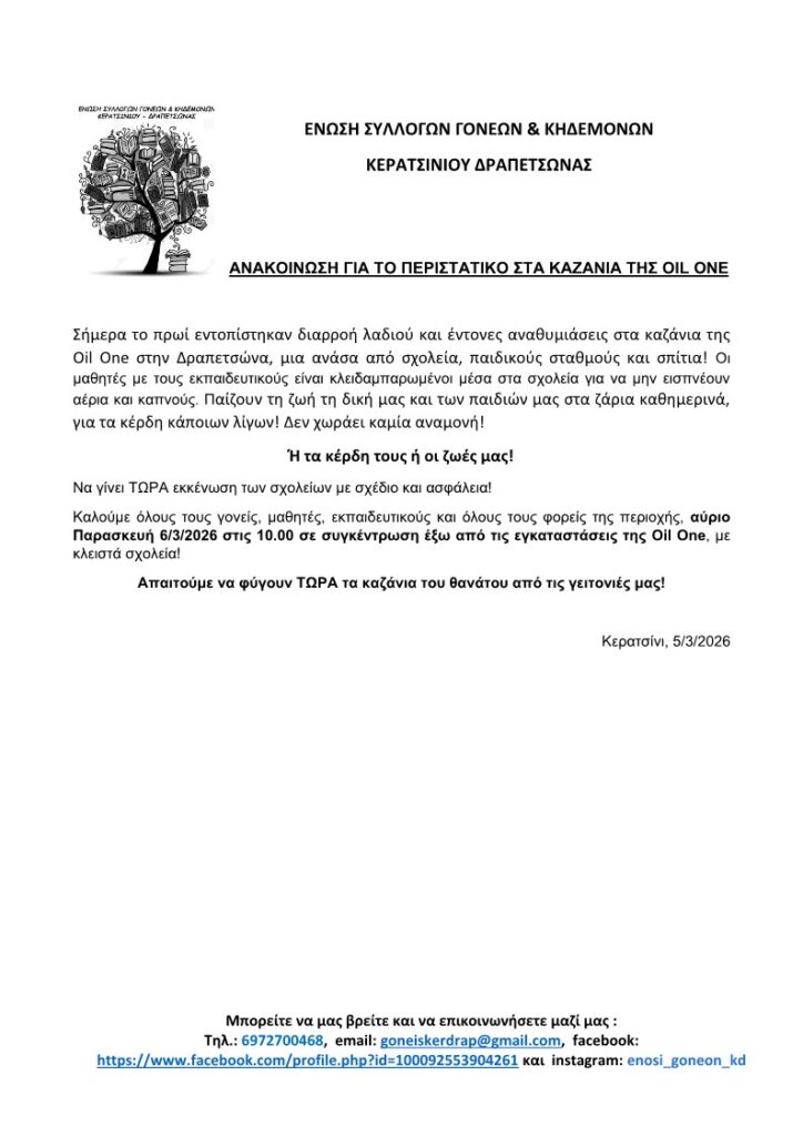 ΑρχικήΕνημέρωση/ΝέαΡΥΠΑΝΣΗ ΑΠΟ OIL ONE Ενημέρωση/Νέα ΡΥΠΑΝΣΗ ΑΠΟ OIL ONE By peemagen 5 Μαρτίου, 2026 0 6 Κοινοποίηση FacebookTwitterPinterestWhatsApp Κοινοποίηση FacebookTwitterPinterestWhatsApp Προηγούμενο άρθροΑΠΕΡΓΙΑ . RELATED ARTICLES Ενημέρωση/Νέα Σκοπευτήριο Καισαριανής ,Πρωτομαγιά του ’44… 16 Φεβρουαρίου, 2026 Ενημέρωση/Νέα Απρόθυμη η Ελληνική κυβέρνηση να προστατεύσει τα θαλάσσια σύνορά της ,παρακολουθεί τα Ισραηλινά drones να επιτίθενται στον στόλο της Ειρήνης ,νότια της Κρήτης!!! 25 Σεπτεμβρίου, 2025 Ενημέρωση/Νέα Ζόφος στο Καμπαναριό. 5 Σεπτεμβρίου, 2025 - Advertisment - Most Popular ΑΠΕΡΓΙΑ . 3 Μαρτίου, 2026 Δελτίο τύπου ΠΝΟ 3 Μαρτίου, 2026 ΟΙ ΑΝΟΗΤΟΙ… 2 Μαρτίου, 2026 ΑΠΕΡΓΙΑ 28 /2 19 Φεβρουαρίου, 2026 Φόρτωση περισσοτέρων Recent Comments